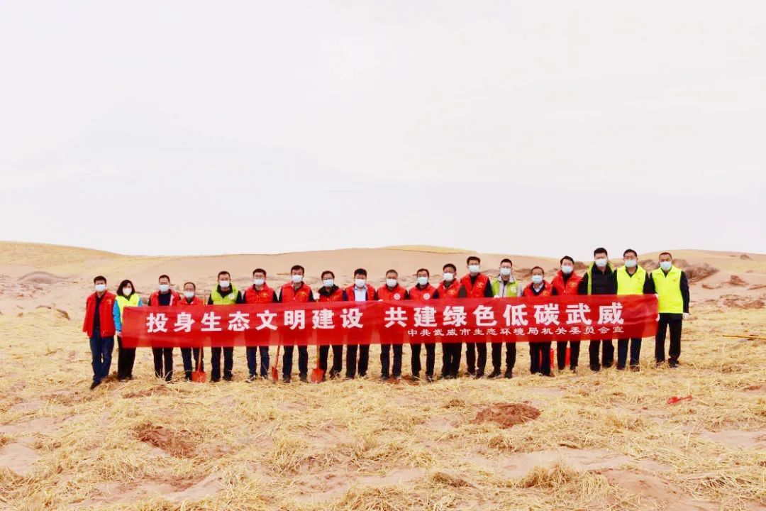 近日,武威市生態(tài)環(huán)境局組織黨員干部赴民勤縣昌寧鎮(zhèn)四方墩生態(tài)林基地,與全市干部職工一起開展義務(wù)壓沙造林活動(dòng),以實(shí)際行動(dòng)踐行習(xí)近平生態(tài)文明思想,牢固樹立“綠水青山就是金山銀山”新發(fā)展理念,加快推進(jìn)生態(tài)大市建設(shè)。